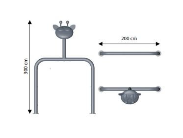 Zabawka wodna wykonana ze stali nierdzewnej, pomalowanej proszkowo. Jakość wykonania na najwyższym poziomie gwarantuje bezpieczną zabawę przez długie lata. Model ŻYRAFA działa jak kotara wodna- dysze umiejscowione są w elementach tworzących nogi, głowa natomiast działa jak natrysk. Przybliżony zakres pryskania wodą znajduje się w albumie zabawki.