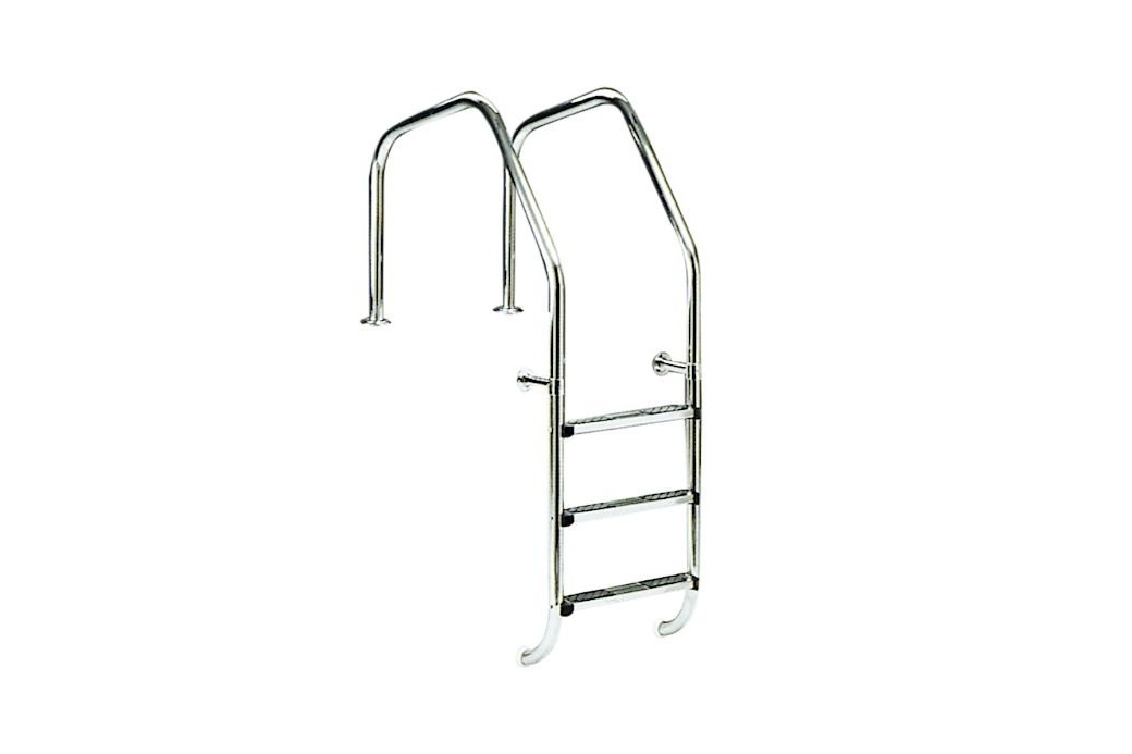 Drabinka basenowa wykonana ze stali nierdzewnej. Model R dedykowany jest głównie basenom publicznym z rynną przelewową. Wydłużony pochwyt oraz dodatkowy środkowy uchwyt odpowiadają za stabilność i gwarantują wydłużony czas eksploatacji drabinki.